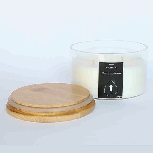 Vela de Vidrio Bamboo-Aroma Rose&Oud-600 grs